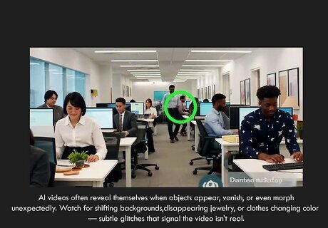 Objects appear and disappear without warning. Although some AI videos may be tougher to detect, looking for things that show up out of nowhere or randomly disappear is a great way to spot them, agrees Marczewski. Check the background of the video and look for things that appear and disappear without warning, like people walking or a biker randomly emerging from a truck. Marczewski says some other common inconsistencies include the background subtly shifting, jewelry disappearing, or clothing slightly changing color.