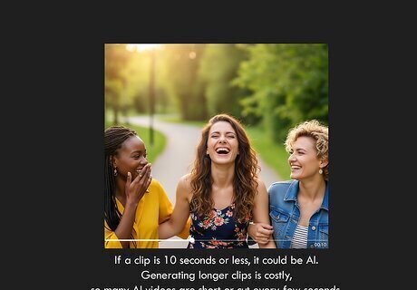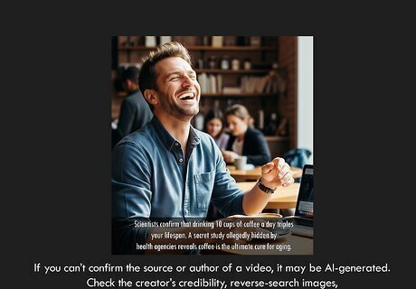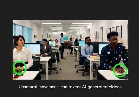Teach people around you about AI-generated video technology. Some people may not be aware of the capabilities of AI technology, meaning they likely won’t be able to spot AI videos. To help spread awareness, teach the people around you about the technology. Send your mom an article on how to detect AI videos, talk about common signs with your friends, and do what you can to keep people informed of AI video technology and its capabilities. In your personal life, Marczewski suggests making posts on social media comparing real videos you’ve taken with AI-generated videos of the same content. In your post, point out inconsistencies in the AI-generated video that give it away. In your professional life, Marczewski suggests running a workshop that teaches your colleagues how to spot AI-generated content. For instance, you might show them a fake leadership video and point out how the lip movements don’t match up.