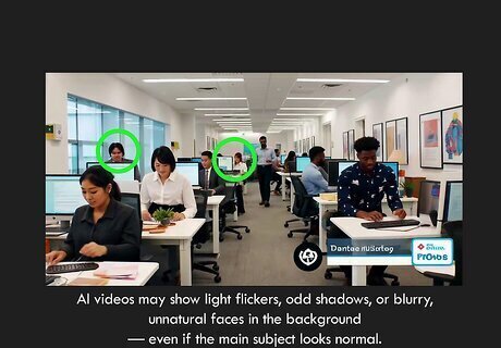 There are light flickers, blurry faces, and unnatural shadows. Some AI-generated videos tend to have unnatural shadows appear in areas that are supposedly lit, and light flickers on specific parts of the shot (like on the person but not behind them). The most telltale thing to look for is blurry, unnatural faces in the background. Even though the person in the foreground may look normal, a blurry, uncanny-looking face in the background indicates AI.