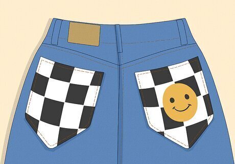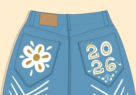 Painted Pocket Jeans Your back pockets are the perfect canvas for small designs. For example, write your school’s name or your graduation year, or paint your school’s mascot or a cute pattern, like flowers. Paint the background a different color from the rest of your jeans to really make the design pop.