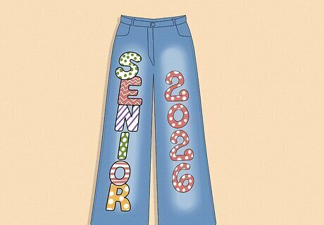 Patterned Letter Jeans Add a fun, playful touch to your jeans by painting different patterns inside your lettering. For example, write “Senior” in big block letters, then paint each letter with a different pattern—like polka dots, cheetah print, or chevron. This will create a cheerful, whimsical aesthetic.