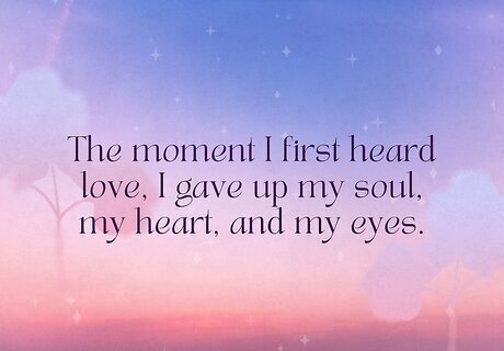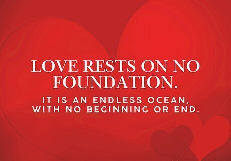 Feel closer to another who is not nearby. Rumi’s vivid imagery, like “I want your sun to reach my raindrops,” uses the theme that love is something magical (and spiritual) that isn’t diminished because 2 people are not together. Along with love quotes for her or him, they would work well within a love letter between those in a long-distance relationship. According to many of these quotes, love knows no distance or time apart. Goodbyes are only for those who love with their eyes. Because for those who love with heart and soul, there is no such thing as separation. Love is the bridge between you and everything. From the distance, you only see my light; come closer and you will know that I am you. I want your sun to reach my raindrops, so your heat can raise my soul upward like a cloud. Love will find its way through all languages on its own. You left, and I cried tears of blood. My sorrow grows. It’s not just that you left. But when you left, my eyes went with you. Now, how will I cry? You think because you understand ‘one’ you must also understand ‘two,’ because one and one make two. But you must also understand ‘and.’ I choose to adore you from a distance, for distance will shield me from pain. I chose to kiss you in the wind, for the wind is gentler than my lips. I choose to hold you in my dreams, for in my dreams, you have no end. When I am with you, we stay up all night. When you're not here, I can't go to sleep. Praise God for those two insomnias and the difference between them. My Love, if two hearts like ours are destined for each other, then no distance, no time, and no hardship can truly keep them apart. Fate will always find a way to reunite what it has written in the stars.