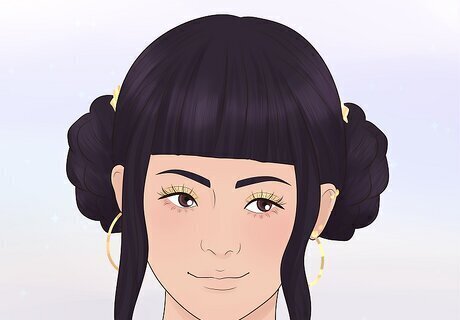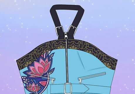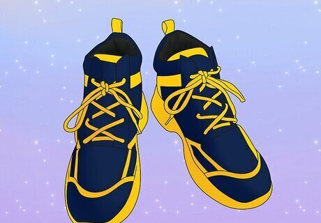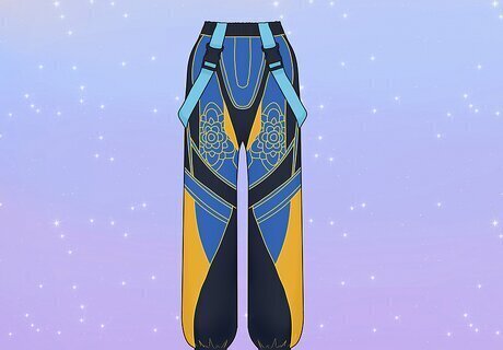 PantsZoey wears dark navy or black parachute pants while in her “How It’s Done” popstar outfit; the pants have geometric yellow and blue designs on them. It might be a little tricky to find pants that look exactly like Zoe’s out in the wild, so start with a pair of plain navy blue parachute pants (or black parachute pants, as a substitute) and add the embellishments yourself! Cut out yellow and blue felt or foam into each geometric shape featured on the pants, and attach them with fabric glue. Zoey’s pants have thick yellow stripes covering each shin (from the ends of the pant legs to just below the knee), which then wrap around to the back of the pants and up, meeting in the middle around the buttocks area.