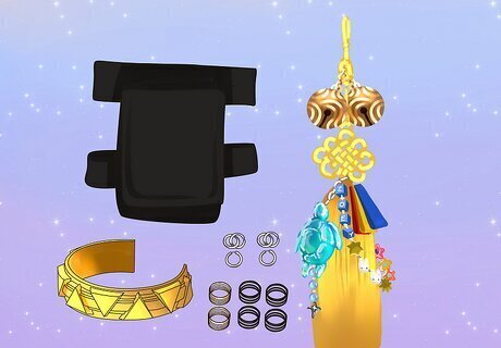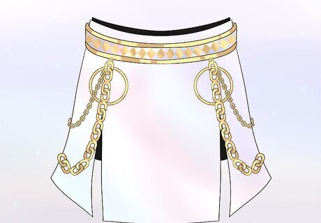 Shoulder guardsZoey’s top also has armor-like shoulder guards on either shoulder—and they’re white with gold trim and detailing, no matter which version of the outfit (“Golden” or “What It Sounds Like”) you choose! You can make your own shoulder guards out of craft foam and attach them to either shoulder on the shirt with fabric glue. To make the shoulder guards: Trace two large, rounded rectangles on craft foam, making sure they’re the same size (and just a little longer than the shirt’s shoulders). Then, cut them out. Hold each craft foam piece up to a steady heat source (like an iron), then shape it so it can curve over the shoulder. Paint your craft foam white if it isn’t already (or just buy white craft foam in the first place). Finally, use golden paint to add the detailing onto each shoulder guard. When they’re completely dry, attach them to the shirt. You can also find some shortcuts online. One Etsy shop has a pattern and tutorial for Zoey’s pauldrons, and another sells 3D printer files for them. Or, if you buy a pre-made Zoey costume, the pauldrons will be included!