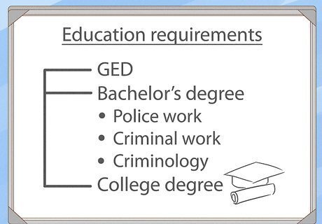 Meet or exceed the entry-level detective education requirements. Satisfy the minimum requirement with a high school diploma or GED. Or, make yourself a more desirable candidate by pursuing a higher education. Graduate with an associate’s degree or even a bachelor's degree in an area relevant to police work. Many detective agencies require college coursework or a college degree, so you’ll have a greater chance of being hired. Getting an associate’s degree or bachelor’s degree will also make it likely for you to earn a higher starting salary. Consider an associate’s degree or bachelor’s degree in a field like criminal justice, criminal law, criminology, human relations, judicial function, forensic science, political science, or criminal procedure. Find a degree program that includes an internship component, which will give you more real-life experience. Learn a language that’s useful for your community, like Spanish. Being fluent in another language is a major asset for many urban departments and federal agencies. There aren't typically a lot of requirements for earning an associate's degree, as it's often designed to be a foundational advanced degree. To earn an associate's degree, one must first obtain a high school diploma or GED. Some schools might have more specific requirements as well, like having a personal statement or a certain GPA.