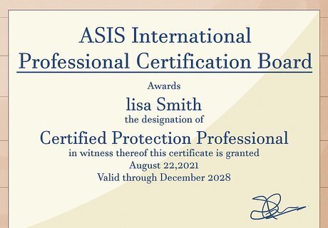 Get certification from a professional organization. Research local or online programs that offer customized certification programs designed for niche fields of detective work. Apply for the programs that are the best match for your professional goals. For example, if you want to specialize in negligence or criminal defense, get certified by the National Association of Legal Investigators. If you plan to specialize in security, get certified by ASIS International, which offers the Professional Certified Investigator certification. Additional certifications, like one issued by the ACFE to work as a Certified Fraud Examiner, can help you take on more niche cases because you’ll be specially qualified.