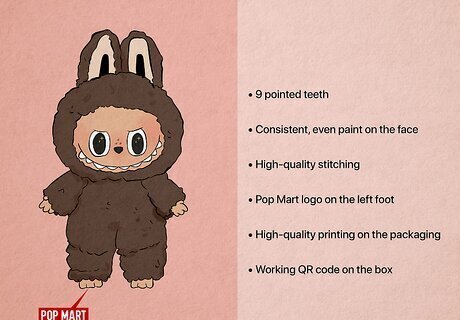 Fake Labubus could have a non-rotating or freely spinning head. If you have a keychain plush and the head doesn’t spin at all—or if it spins easily, with little to no resistance—it could be a sign you’ve accidentally purchased a fake Labubu (called a Lafufu). But it’s not a definite sign on its own, so check for other signs that your Labubu is genuine, like: 9 pointed teeth Consistent, even paint on the face High-quality stitching Pop Mart logo on the left foot High-quality printing on the packaging Working QR code on the box
