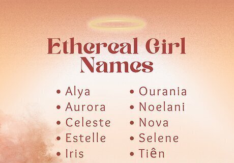 Angels are divine beings that belong to the sky and the spirit world, so give your baby girl a name inspired by their ethereal nature. Some great options include: Alya: “Heaven” or “sky,” Arabic origin. Aurora: “Dawn,” Latin origin. Celeste: “Heavenly,” French/Latin origin. Estelle: “Star,” Latin origin. Iris: “Rainbow,” Greek origin. Ourania: “Heavenly,” Greek origin. Noelani: “Heavenly mist,” Hawaiian origin. Nova: “New,” Latin origin. Selene: “Moon,” Greek origin. Tiên: “Celestial being” or “fairy,” Vietnamese origin.