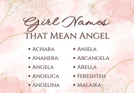 Several feminine names mean “angel”—these are perfect for letting your baby girl know she is divine. For example, consider: Achara: “Angel,” Thai origin. Anahera: “Angel,” Māori/Polynesian origin. Angela: “Angel” or “messenger of God,” Greek/Latin origin. Angelica: “Angelic” or “messenger of God,” Latin origin. Angelina: “Angel” or “messenger of God,” Greek origin. Aniela: “Angel” or “messenger of God,” Greek origin. Arcangela: “Archangel,” Italian origin. Arella: “Angel” or “messenger of God,” Hebrew origin. Fereshteh: “Angel,” Persian origin. Malaika: “Angel,” Arabic origin.