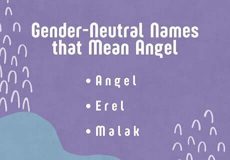 If you’re not into gendered names, there are a few unisex names that mean angel. For example: Angel: “Messenger of God,” Greek origin. Erel: “Angel” or “hero,” Hebrew origin. Malak: “Angel,” Arabic origin.
