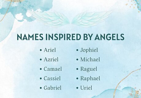Several angels are mentioned in Judaism, Christianity, and Islam, as well as some other religions. So, consider giving your little one the name of an angel to show them how blessed and loved they are. Some ideas include: Ariel: “Lion of God,” Hebrew origin. Azriel: “God is my help,” Hebrew origin. Camael: “He who sees God,” Hebrew origin. Cassiel: “Leap of God” or “God is my wrath,” Hebrew origin. Gabriel: “Man of God” or “God is my strength,” Hebrew origin. Jophiel: “Beauty of God,” Hebrew origin. Michael: “One who is like God,” Hebrew origin. Raguel: “God shall pasture” or “friend of God,” Hebrew origin. Raphael: “God has healed,” Hebrew origin. Uriel: “God is my light,” Hebrew origin.