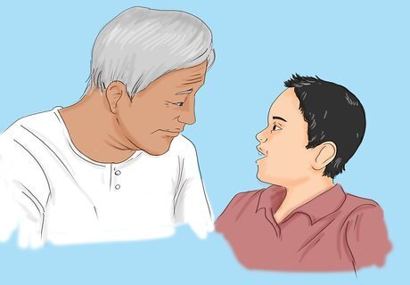 Talk. People like to engage in conversation and your Grandpa is no different. He wants to know that you are thinking about them and that you want to know what they think. Maybe you are not sure what to say. If so, then ask questions. Ask about what life was like for your grandfather in the past. Does he have brothers and sisters? If so, surely he has some good stories to tell. Ask if he remembers some funny things that happened in school. Ask what his first job was. Ask him to tell you about a time he was scared. Ask what foods he liked as a child. See if you can figure out how your grandfather communicated with friends before the internet was even invented. Find out if he remembers what life was like before cell phones. There are all kinds of things to talk about.