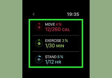 Open your Apple Watch's Activity app. Open the "Apps" screen by pressing the "Lock" button and then tapping All Apps if necessary, then tap the Activity app icon.