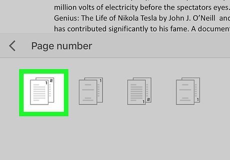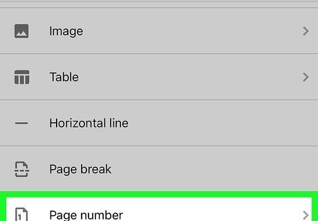 Scroll down the menu and tap Page number. A list of positions for your page numbers will appear.