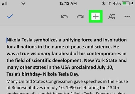 Tap the + at the top of the screen. This opens the “Insert” menu.
