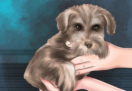 Choose between a puppy and an older dog. When you decide to adopt a schnauzer, you should decide if you want an adult dog or a puppy. If you want to adopt a schnauzer, it will probably be easier to find an adult dog to adopt, but there may be some puppies available if you are willing to spend some time searching. An adult dog will be less work than a puppy. They may already be housetrained and will have probably outgrown the puppy tendency to chew things up. They will probably have a calmer temperament and be less active. Puppies sure are cute, but they also require a lot of time and energy. They will need more exercise than an older dog and more attention to ensure they don’t pee in the house or tear up your belongings. They’ll need to be housetrained and trained in obedience and require a lot of attention.