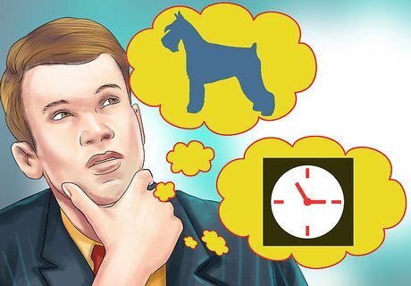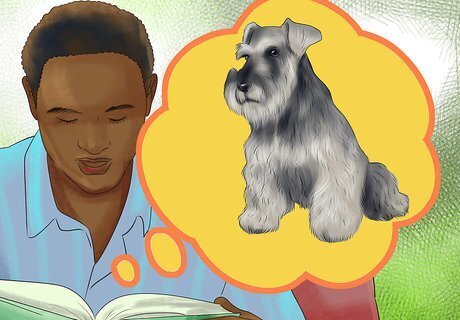 Consider the amount of time you can devote to a dog. Schnauzers aren’t the highest maintenance type of dogs, but they do have a lot of energy. A schnauzer will require some significant exercise and vigorous play time from you as their owner. If you want a lapdog, a schnauzer will be happy to accommodate this, but they will also need to be exercised regularly. Try to give your schnauzer between 30 minutes and one hour of exercise every day. Schnauzers will also need to be groomed regularly, which is another time consideration. Their coats get matted easily, so they need to be brushed often or taken to the groomers.