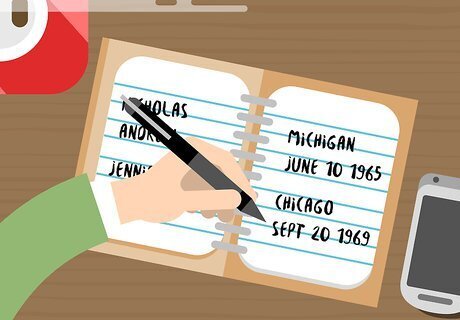 Gather important facts. There’s certain information you’ll need for the application, such as: Your parents’ full names (including mother’s maiden name) Your parents’ state of birth and address (if living) The number of your prior marriages The date your last marriage ended (if applicable).