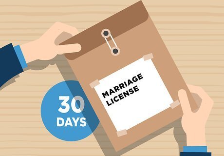 Use the license within 30 days. The marriage license is only valid for 30 days. If you don’t get married within that 30 day period, you’ll basically have to start the application process from scratch.