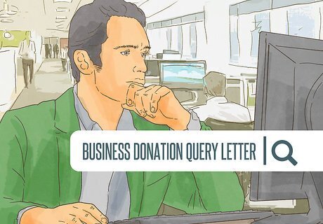 Search for templates. Before you schedule a meeting with a business owner or representative to ask for a donation, send a letter (through mail or email) that introduces them to your organization or project and explains that you want to request a donation. If you're not comfortable crafting a letter on your own, you can do a general internet search for sample letters or templates. Use them as guides for your own letter, but be careful copying them word-for-word – they may include information that doesn't apply to your situation. Search for "business donation query letter" or "nonprofit donation letter" and download or print several that you can use. That way you can compare and contrast to find the right wording for the needs of your particular project.