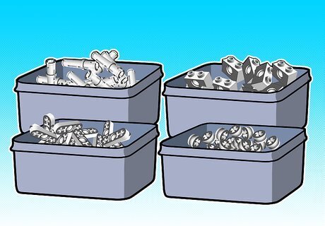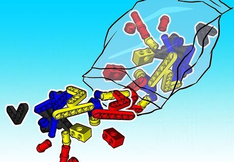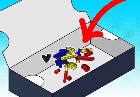 Separate each part into several bins or piles (according to color and/or piece type). Use either a very large unclutter table or Cool Whip containers to temporarily store the unused pieces. Technic pieces are styled into several types of pieces which include Bricks are just like any other Lego-piece. Bricks don't play too big of a role in Lego Technic models however.Assemble a LEGO Technic Model Step 3Bullet1 Version 2.jpg Pins help join and make the piece rotate to make the model move and connect one piece to another.Assemble a LEGO Technic Model Step 3Bullet2 Version 2.jpg Beams are mainly decorative pieces, however, they do play a key role in making the model "come alive".Assemble a LEGO Technic Model Step 3Bullet3 Version 2.jpg Bushes and joints also help secure axles to their associated pieces.Assemble a LEGO Technic Model Step 3Bullet4 Version 2.jpg Power and transmission systems vary by model, however, just like on an automobile, they provide the necessary "get up and go" "juice" to perform the models' movement (if they need to be powered)Assemble a LEGO Technic Model Step 3Bullet5 Version 2.jpg Chains and pulley's are also a necessary item and connect the motor to the transmission.Assemble a LEGO Technic Model Step 3Bullet6 Version 2.jpg Levers and links vary by puzzle type. So have them, and some don't. Some are colored differently. They all work the same, but their length may differ.Assemble a LEGO Technic Model Step 3Bullet7 Version 2.jpg