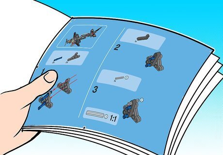 Open the first book to the first page containing the beginning of the steps. Although the "What you'll need list" at the front of the book helps, sometimes this info can get redundant when you've put together many models, since you'll know exactly what each piece will be able to conform to.