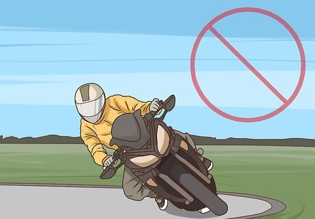 Avoid speeding through tight turns. If you’re going through a turn too quickly, you may end up flying off the road. To prevent this from happening, avoid driving too quickly to correct a bad turn. The faster you’re going, the less time you’ll have to adjust for a sharp turn. Use visual clues such as light posts and telephone polls to help you gauge the severity of a turn. If you find yourself in this position anyway, don’t slap on your brakes or chop the throttle. Instead, lean into the turn and try to ride it out.