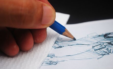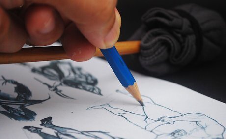 Use a mahl stick or a drawbridge. If you're working on a large picture, sometimes you just have to put your hand somewhere. Luckily, there are a couple of tools specifically made for this problem. The first, a mahl stick, is nothing more than a length of doweling with a non-mar rubber tip. Holding the stick in your non-drawing hand, put the rubber tip on the desk or the paper, out of the area where you are working. Now put a pencil or a paperback book at the other end of the stick, where you are holding it. Continue to hold onto the mahl stick so that you can move it with your drawing hand. Rest the heel of your drawing hand on the stick rather than on your drawing, and draw. It keeps your hand up off the picture. A drawbridge is similar - it's usually a piece of clear acrylic about 4"x12", with rubber feet on the bottom. Put the drawbridge on the drawing, where your drawing hand needs to rest, and use it to rest your hand on, instead of laying your hand directly on the drawing.