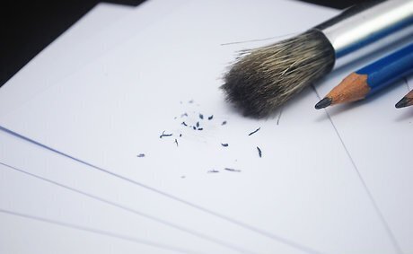 Use a brush to remove eraser or graphite crumbs - don't brush them off with your hand. Soft brushes like this can be purchased at any art supply store. Take care not to use the brush for any purpose other than this, though, or you may find that dirt or other foreign stuff will get transferred from the brush onto your nice drawing.