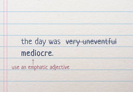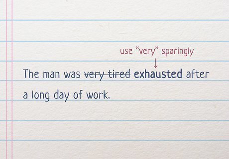 Use “very” sparingly in your creative writing. As a general rule of thumb, try to remove and replace “very” in your creative drafts and use a more engaging adjective or adverb instead. If you use words like “very” too often in your writing, your text could come off as lazy or unengaging. Instead, choose words that help paint a clear picture for your reader. For instance, instead of saying “The man was very tired after a long day of work,” you could say, “The man was exhausted after a long day of work.” Avoid similar "dead words" like "good" and "bad." Dead words don't give you a lot of detail or information.