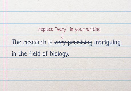 Delete any instances of “very” from your writing. Read through your email, memo, academic paper, or other professional document that you plan on sending or submitting. Search your writing for any instances of “very,” and try to delete or replace the word whenever possible. If you use “very” too often, your message could appear juvenile or casual, and the recipient might not take you seriously. If you’re working on a digital device, try using the “find” feature to highlight specific words in your text. For instance, instead of saying “The research is very promising in the field of biology,” say something like “The research is intriguing to many biologists” instead. If you were writing a professional email, you could say “I’m eager to work with you,” as opposed to “very excited.”