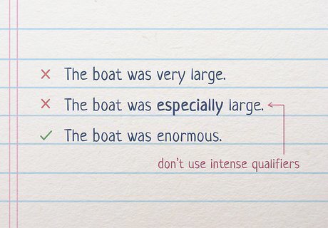 Avoid replacing “very” with other intense qualifiers. Don’t switch out “very” with another word that serves the same purpose, like “especially” or “severely,” as these words will make your writing sound unprofessional and juvenile. Instead, replace “very” with a more descriptive word that fits better into the sentence. For example, instead of saying, “The boat was especially large,” you could say, “The boat was enormous.”