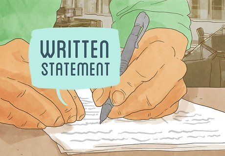 Review your written statements. If you talked to the police, gave a deposition, met with the attorneys in the case, or otherwise said anything that was written down (or recorded), get copies and read them over. This will help refresh your memory of details you may have forgotten. You may also want to condense, edit or “hold in abeyance” certain points or items of evidence. To hold something in abeyance means to leave something undetermined until a future time when it may be necessary. For example, if you think a part of your testimony is irrelevant -- e.g., a personal anecdote in the middle of a statement about an incident you witnessed -- you can hold it in abeyance. Remember that if an attorney can point out a discrepancy between your court testimony and your previous statements, you can lose credibility with the jury. You will also be more persuasive if you can move confidently through the chain of events. Reviewing your statement will help refresh your memory of what you are testifying to.