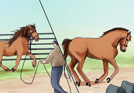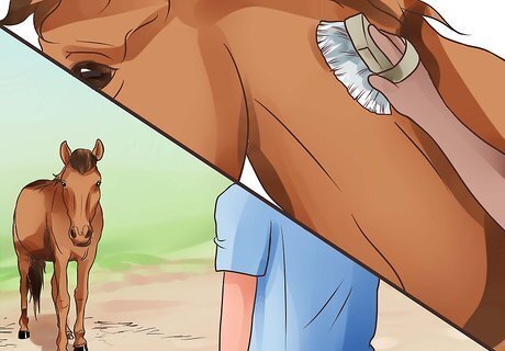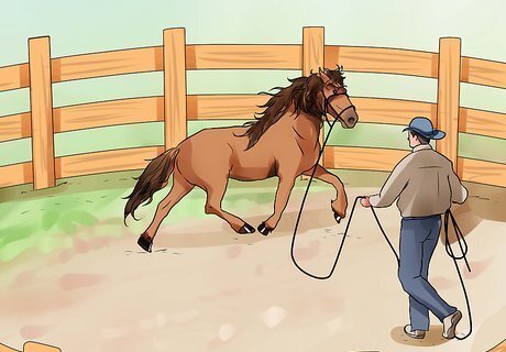 Earn the horse's trust. Spend plenty of time talking to your horse and interacting with it so it gets to know and trust you. Set aside time for relaxing activities, such as grooming or a lazy grazing day. As a more experienced owner, you can gain the animal’s respect with calm, consistent ground work, including exercises on a longe line and with free rein. This is a long process that requires an experienced and certified trainer, even if you have intermediate experience.