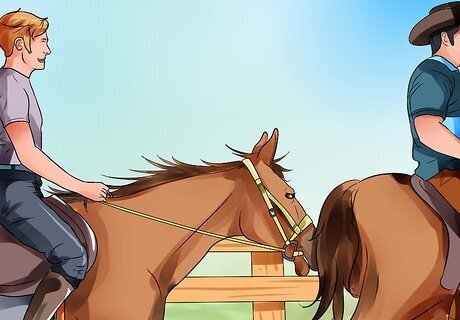 Ride with a buddy. If you don't feel comfortable around a horse, have your friend or trainer ride in front of you. Since horses are herd animals, your horse will naturally want to follow the horse in front. This is especially important when you're practicing a new skill. Too much of this can make a horse "herd bound," which may be a concern if you plan to take the horse to shows.