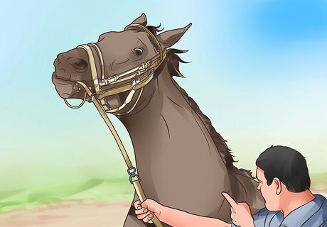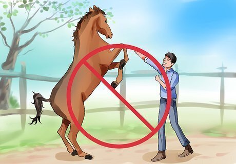Stay in charge. The horse's aggressive behavior may be an effort to challenge you. It's important not to back down or let the horse take control, to show the horse that the behavior is not effective. Even a little hesitation before responding to bad behavior can encourage the horse to keep trying.