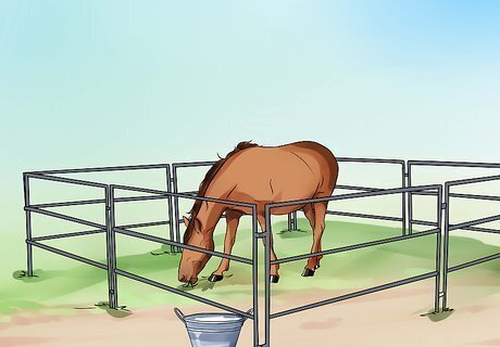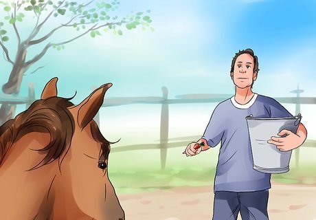 Approach the horse slowly and offer a treat in a bucket. If the treat is taken without any aggressiveness, do this for another couple of days. Horse treats are a great option, along with apples and carrots. Stay away from grapes, as these are toxic for horses.