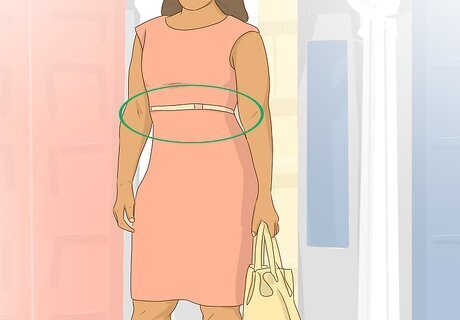Accentuate your curves with clothing that cinches at the waist. Dresses and skirts that cinch at the waist will be more flattering on your curvy figure. The clothing should dip inward at your natural waist, giving it more definition. Invest in pants that hit you at the waist so your curves are on display, rather than hidden. You can also add a skinny belt to a dress or skirt to accentuate your curves, drawing the eye to your waist.