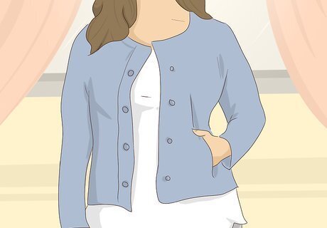 Look for jackets with detailing on the neckline, arms, and shoulders. Go for jackets that have beading or graphics on the top area. Avoid jackets that have detailing in the midsection or hip area, as this can hide your shape. For example, a jacket with vertical buttons or detailing can elongate your body and be very flattering. A jacket with buttons on the shoulders can add a little something extra to an outfit.