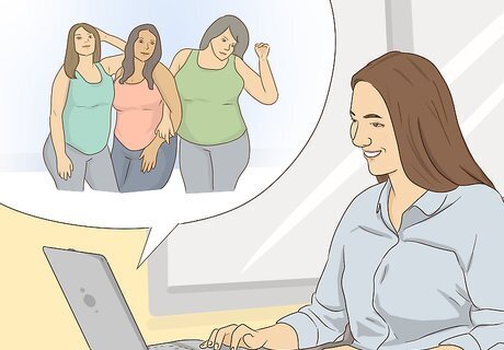 Use curvy models and celebrities on social media as inspiration. Recently, there has been a shift in the media where curvy body types are being celebrated and recognized. Look on Instagram and Facebook for curvy models and celebrities. Use their body-positive message as inspiration. For example, you can look up the social media accounts of curvy celebrities like Kim Kardashian, Ashley Graham, and Melissa McCarthy.