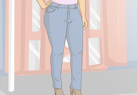 Get pants that are straight or bootleg cut. Jeans and dress pants should fit your body comfortably, with a straight cut or a cut that sits just at your ankle. Avoid pants that are tapered, as they can shorten your frame. Look for jeans and dress pants made of cotton or other breathable material so you can move around in them comfortably.