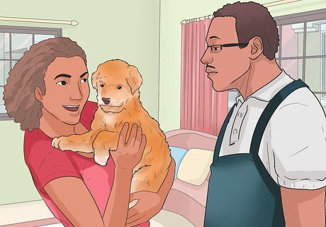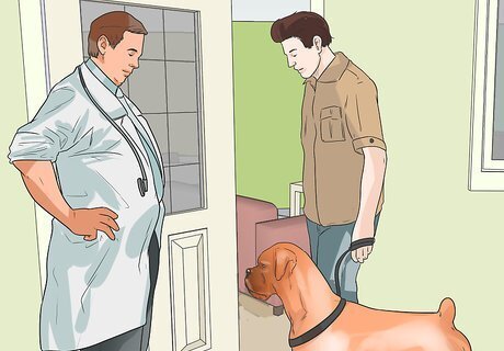 Discuss the issue with your vet. If you have tried obedience training and other techniques to no avail, you may want to bring up the issue with your vet. Tell your vet that your dog acts protective when you and your partner become intimate. You may describe your dog’s exact behavior and demeanor to your vet. Giving your vet as much information as possible can help them give you guidance on how to train your dog to avoid the issue. For example, you may tell your vet, “My dog gets protective if my partner and I hold hands” or “My dog barks at my partner and I when we kiss in front of him. What can I do to address this?”