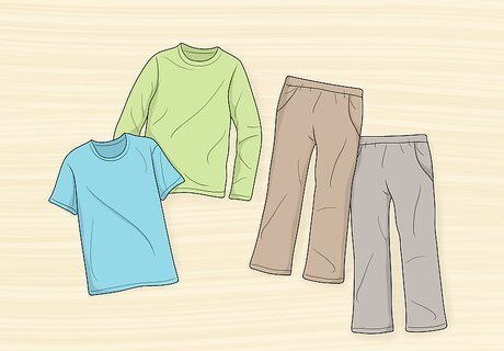 Wear breathable layers of clothing. Even if you’re hiking in the heat of summer, bring multiple layers of thin, breathable clothes just in case it gets colder. Pack a long-sleeved shirt and a pair of pants so that you can put them on over your other clothes. Choose fabrics that are labeled “moisture-wicking” to help you stay cool and dry throughout the hike. Avoid cotton clothing since it holds moisture and can get heavy. Opt for lighter colors since you’ll feel cooler and you’ll be able to spot any ticks or pests easier.