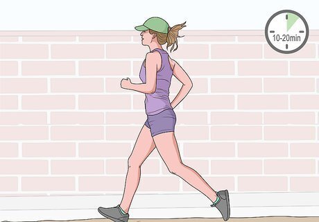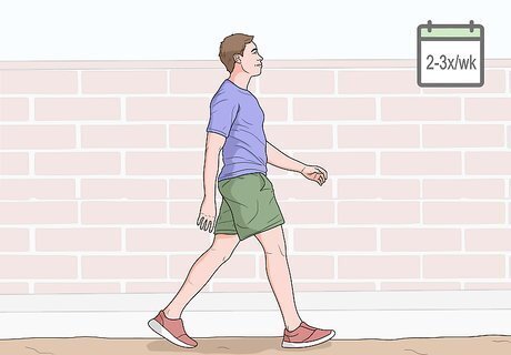 Practice cardio exercises to help increase your stamina. Even though going for a walk is a cardio exercise, try doing something that’s more high-intensity a few times a week. Focus on cardio exercises that work your legs, such as running, cycling, soccer, or swimming. Work on your cardio at least 2–3 times a week on top of your walks. Include high-intensity cardio in your walks. For example, you could jog for 10–20 minutes in the middle of your walk to raise your heart rate.