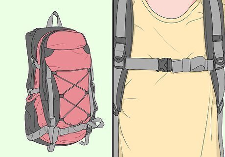 Use a backpack with chest or waist straps. Choose a lightweight backpack so you don’t have a lot of weight to carry. Try to find something that fits well on your back and has comfortable padding on the straps. Check if there are straps that go around your chest and waist so you don’t have so much weight on your shoulders throughout the hike. Hiking backpacks are more lightweight and have more convenient storage than regular backpacks. You can buy one from an outdoor supply store, but they usually will cost around $50–200 USD. Avoid stuffing your backpack full since it will get really heavy and will be difficult to carry.