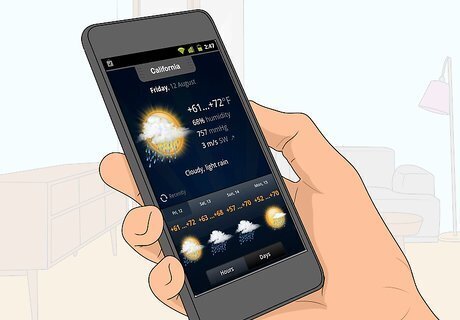 Look up the weather forecast so you can plan your outfit. Check the hourly forecast to see how warm it’s going to be during your hike. If it’s going to be cold, you’ll have to pack more layers so you stay warm. Also be sure to check if it’s going to rain, since you may want to bring a rain jacket or waterproof clothes so you stay dry. The temperature can drop quickly if you change altitudes during your hike, so bring extra layers of clothes in case you get cold.