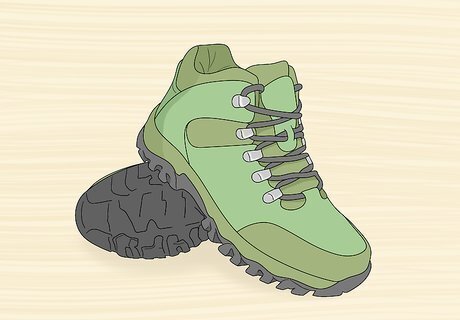 Put on trail shoes or hiking boots for the best foot support. If you’re only going on a light hike on an easy trail, you can probably get away with wearing a comfortable pair of tennis shoes. Otherwise, look for trail shoes or hiking boots that are stiff so you don’t sprain or twist your ankle. Make sure your shoes or boots fit tightly and are comfortable since you’ll be walking in them for a few hours. If you’re breaking in new shoes or boots, wear them out for hikes that are 1–2 miles (1.6–3.2 km) to break them in. As they get more comfortable, increase your distance.