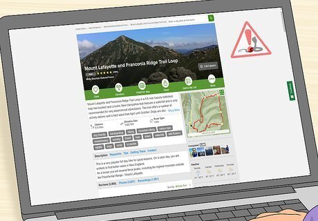 Tell other people where you’re hiking and how long you’ll be gone. Before you leave, talk to other friends and family members and let them know exactly where you’re going. Show them a map of the trail and mention what time you plan to be finished. That way, someone knows where you are in case there’s an emergency. While you’re out on the hike, try to check in on a set schedule so your friends and family know you’re safe.
