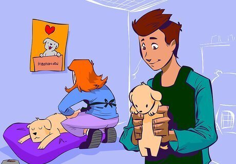Foster a dog. After all of your dog research, you may begin to feel like you’re ready to take on the responsibility of owning a dog. However, if you’re not quite ready to commit to 11 years, which is the average lifespan of a dog, you should consider fostering one. Local shelters are often looking for foster families to provide temporary comfort, love and support to the many homeless dogs. Terms and conditions vary greatly, so be sure to ask a lot of questions. You should know everything from what your financial responsibilities will be, to how the dog interacts with other animals and children. If you have a child in your home, make sure you try introducing the dog to your child before committing to the animal. Even if the shelter says they are good with children, you will want to make the introduction on your own. Understand that if you fall in love with the dog, you may not be able to keep it and it may only be with you for a very short period of time. You should also be aware of the challenges you could face when fostering an animal. Many have come from poor conditions and bad situations. They may have health or behavioral issues.