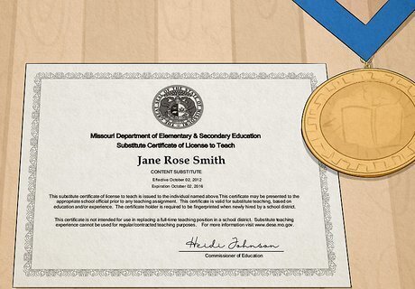 Sign up for substitute teaching. Requirements vary greatly for substitute teaching, and they can differ even on a district-by-district basis. While some locales require that you be a certified teacher, others ask only for a high school diploma. Substitute teaching can be a great way of gaining experience and getting your foot in the door. You’ll need to contact the school district (or specific school, if you are interested in substituting in a private school where requirements may be less strict) to determine if you are qualified. Be prepared to provide the school/school district with any transcripts and the results of a background check.